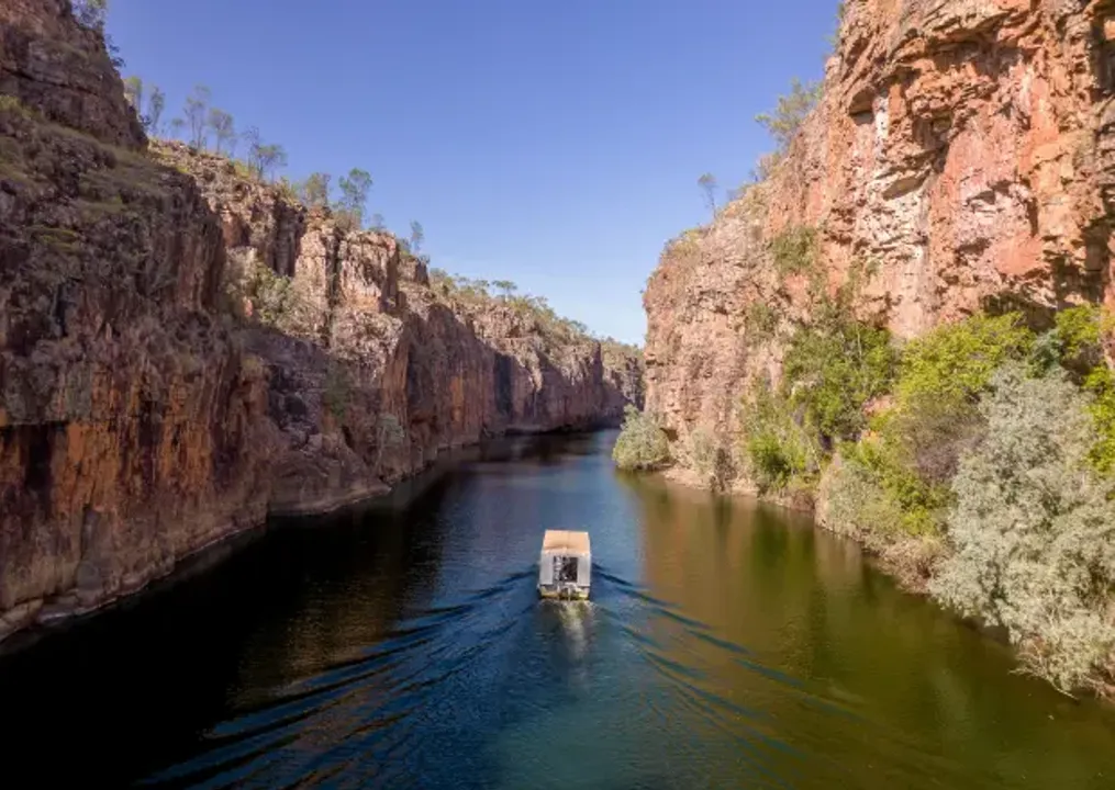 Embarquez pour une croisière paisible sur la Katherine River à travers les fameuses gorges de Nitmiluk, merveilles naturelles multimillénaires.